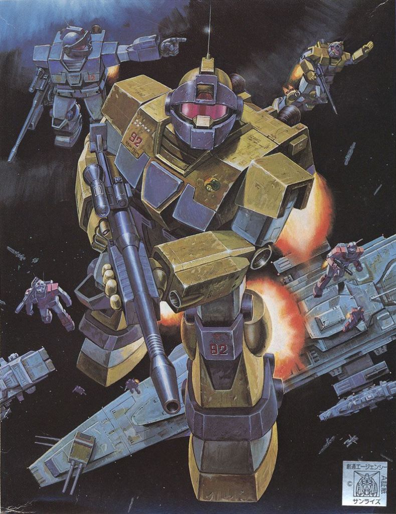 The Rick Dom II is featured in Gundam 0080 as well as by Gato’s right hand man Karius in 0083. It’s a no frills minor upgrade to the Rick Dom. The Dom Tropen also appears in 0083 during the attack on Torrington it features the large size Raketen Bazooka and also has a machine gun sidearm. The Dom Cannon featured in Harmony of Gundam is a Dom Tropen converted to equip a shoulder cannon. The last variant of the Dom Tropen is the Dom Barrage appearing in the Blazing Shadow Manga, this Dom sports heavy armor and a powerful Gatling Gun.