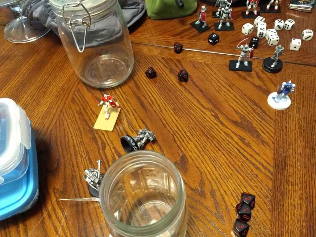 Below are the few photos I remembered to take of a 300pt game run through several iterations to test out a few mechanics. Since the Gyan will be releasing next week I wanted to test out a few variations of it’s hide bomb abilities, what is essentially a space mine. While the Gyan did not show up in the Compilation movies, he made for quite the foe when Amuro faced him in the TV show.