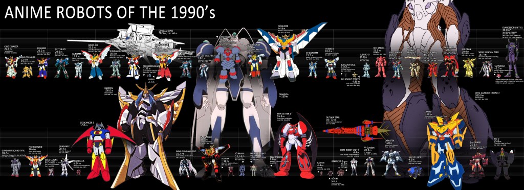Examples: Mobile Suit Gundam, Macross, Mazinger, Gurren Lagann