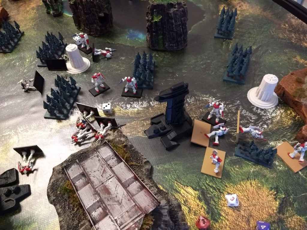 We’ve been working on some major adjustments to the game rules regarding Melee, Momentum and Pilot as well as some point adjustments. As a result we’ve gotten in a lot of playtest games since our last update. Below are some photos snapped during a few of the games and some highlights.