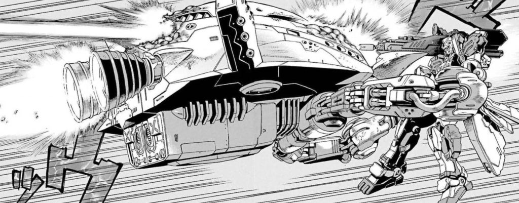 The 7th is carried by the pegasus class carrier The Thoroughbred, the same ship that once held Gundam Unit 4 & 5, when they first launch it they use the Full Armor Type since higher headquarters had prohibited its mobility compensation program after it was discovered that a Zeon spy had developed it. The Full Armor mode provided additional protection in exchange for its poor space maneuverability, as a result this is why we kept the Full Armor at Performance 2. The Full Armor is heavily damaged by a Bigro.
