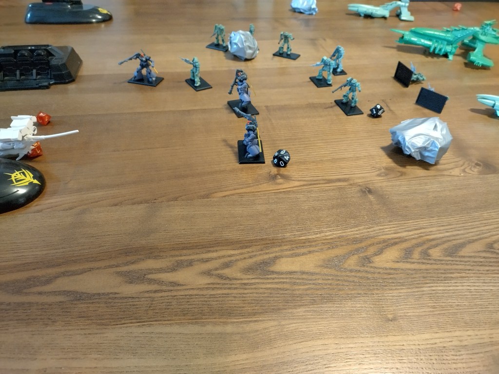 Below the break will be a more photos and a battle report that tracks Momentum and damage to GP03 Dendrobium as well as a post mortem discussing the Gundam tactics and misplays.