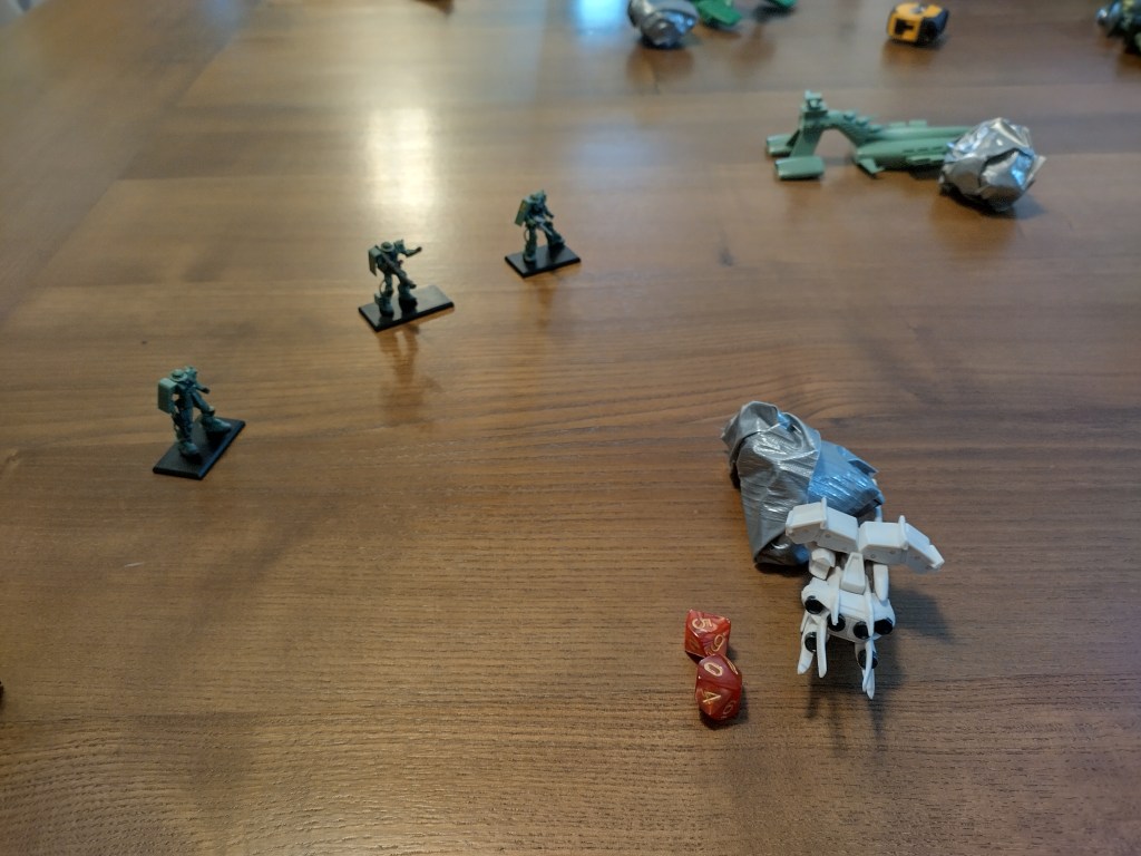 We decided to not use Pilot Skills like “Tear through the Ranks” or “All-Out Attack” for this game since we wanted to prove it was possible for a single 1200pt unit to beat a 1200pt army. I did it, but it was certainly tough and had I lost initiative in Round 3 I might have lost.