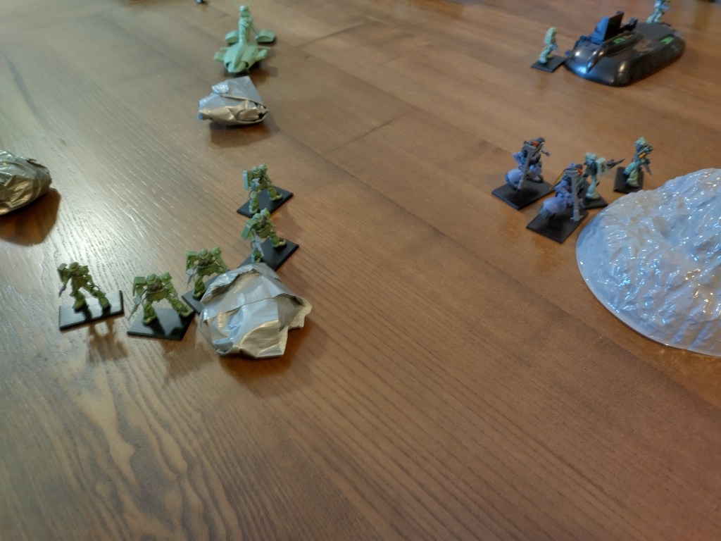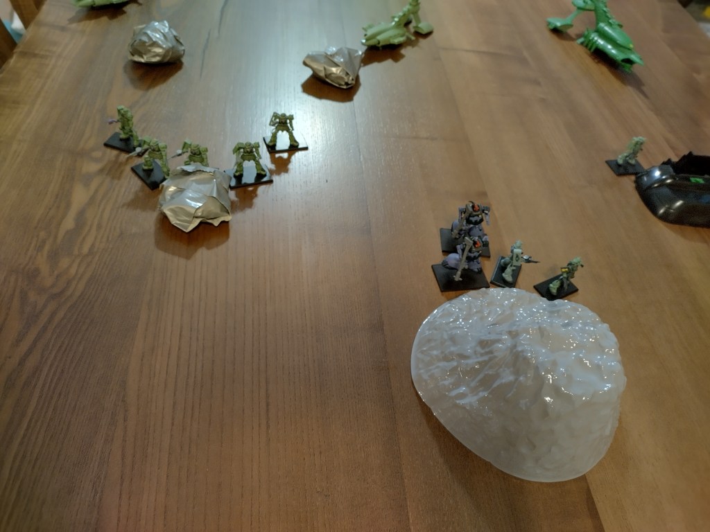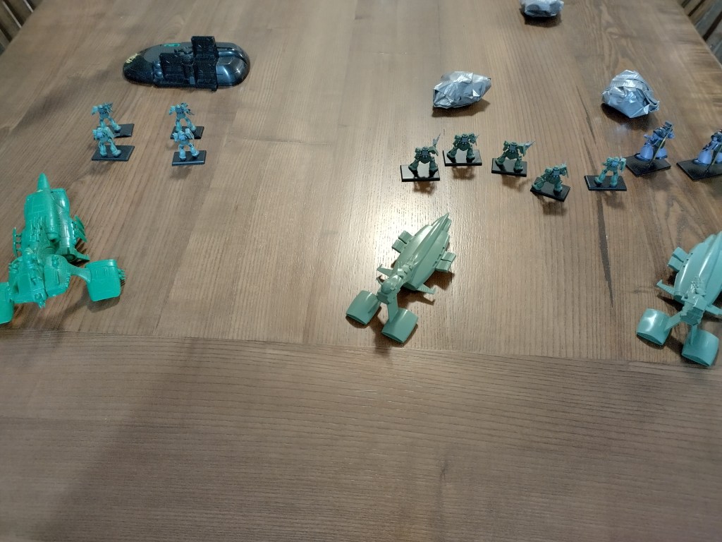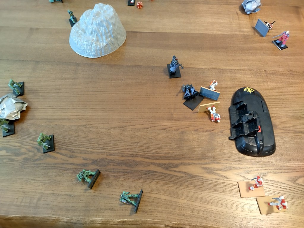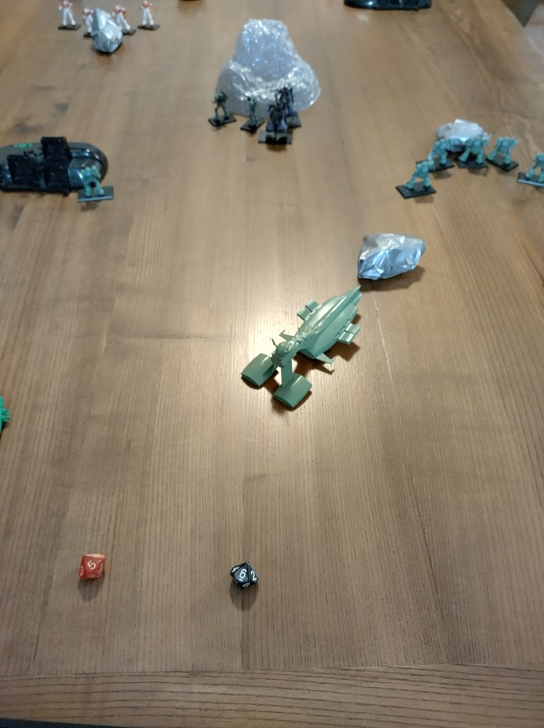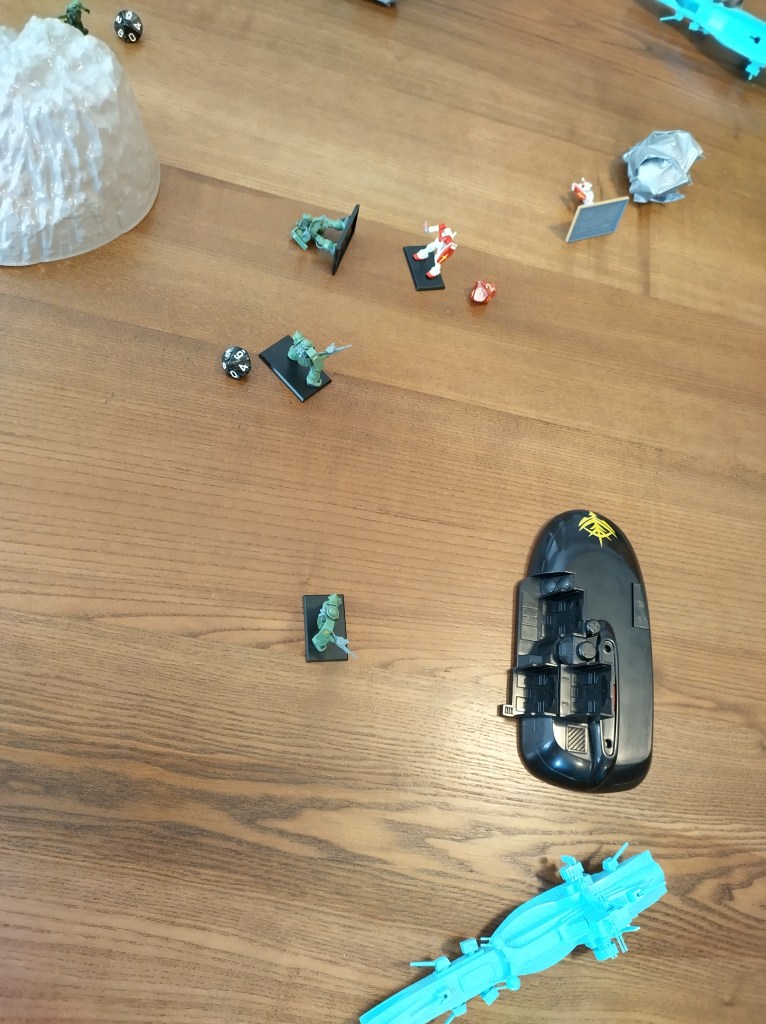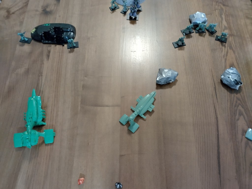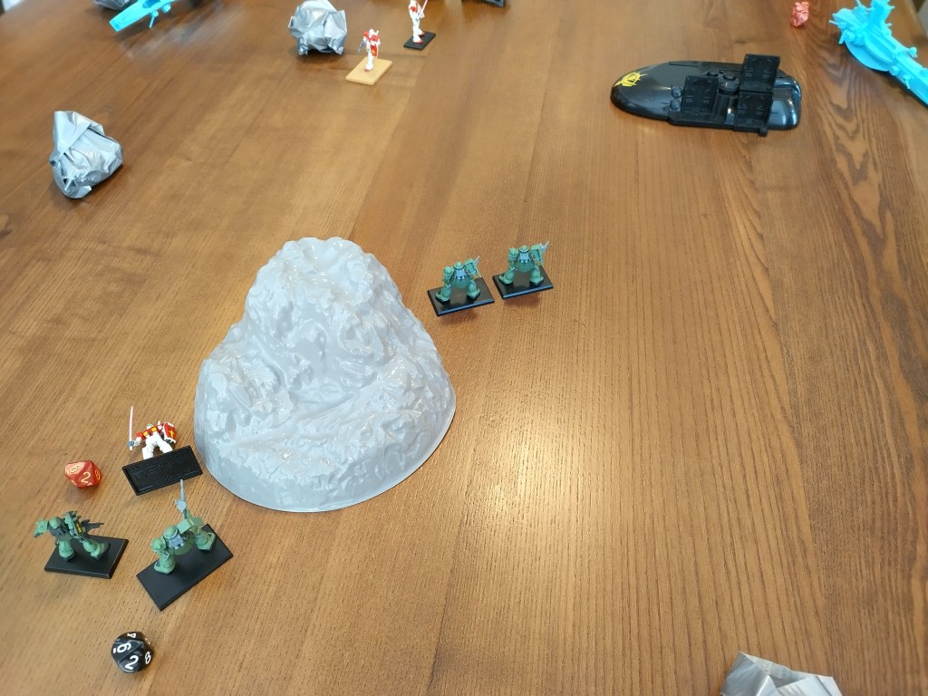 Here are some photos taken during some recent games testing out the Magellan class battleship from Mobile Suit Gundam. Since I don’t have my Magellans kits built yet, we used Captain Harlock’s The Arcadia as a placeholder model. As you can see from the final photo the Magellan class Battleship did pretty well.
