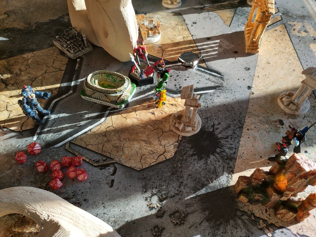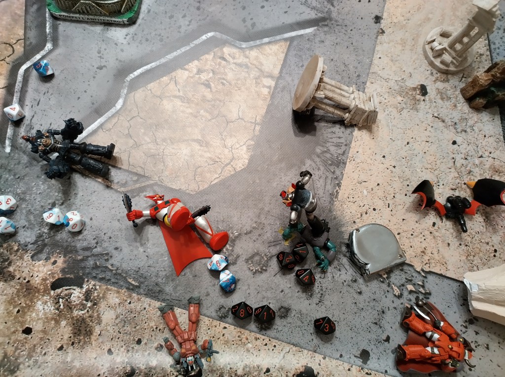 While we’ve only got one photo for this game both GGG and GoLion managed to knockdown 8 pieces of terrain over 5 rounds, with GoLion eventually becoming the winner.