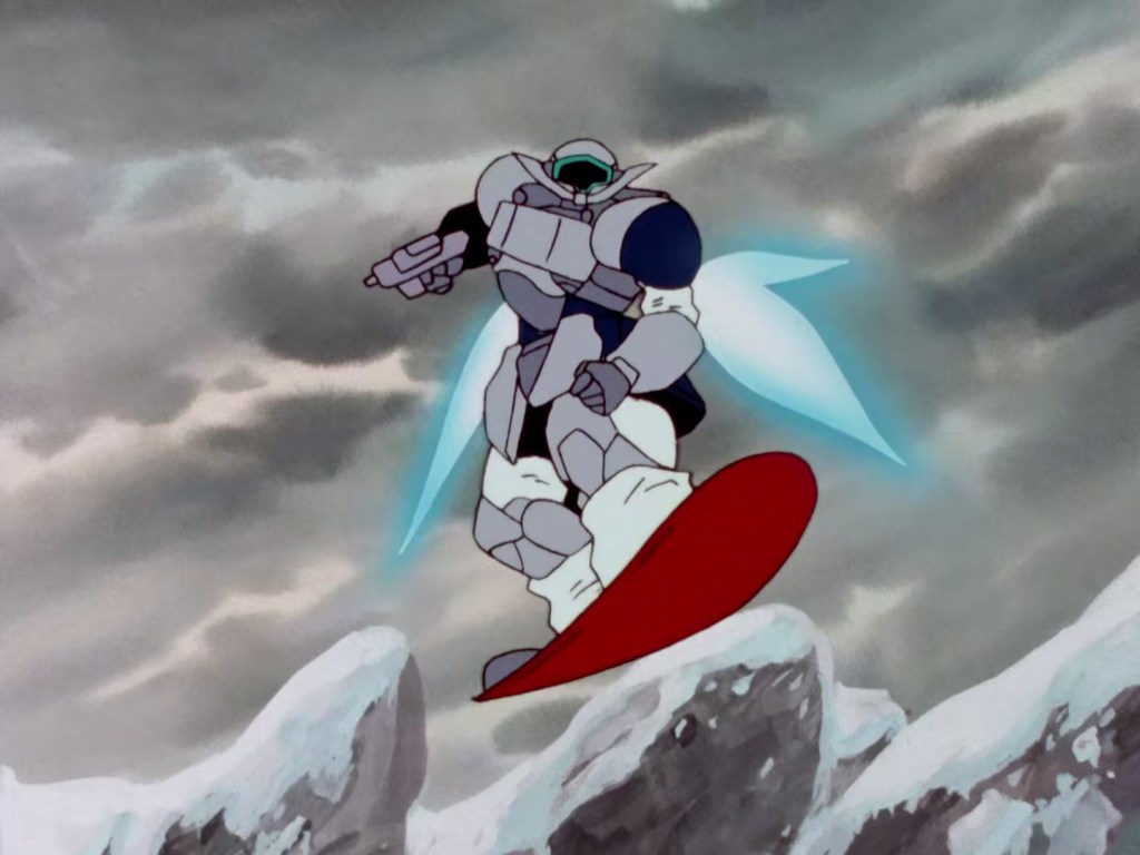 As for the Mobile Suits since Gundam X is very similar to UC Gundam, many of the mobile suits are a homage to the iconic MS of the Universal Century although far from being identical like you’ll see in GSD. The Daughtress represents the GM, the Jenice the Zaku, the Septem the Dom, the Octape the Gelgoog, the Bertigo the Quebeley, and the snowboarding (oh yes!)