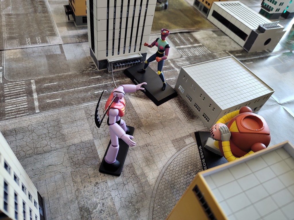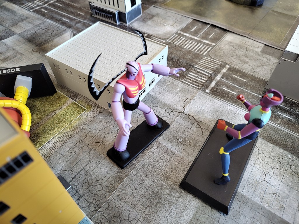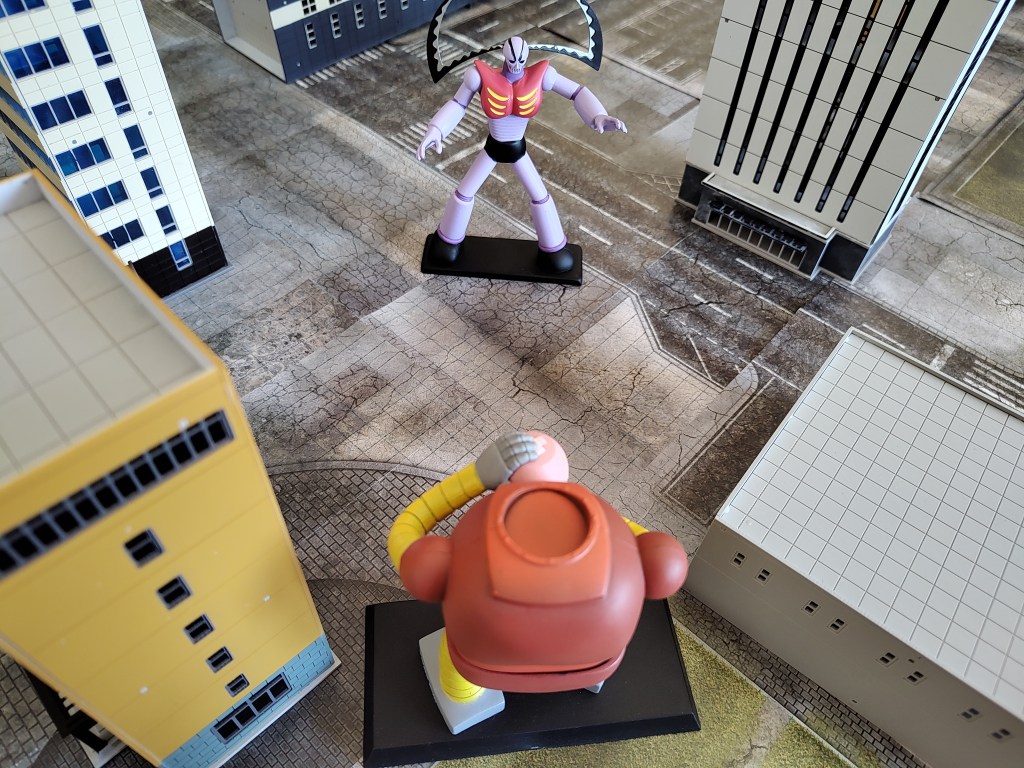 Mazinger Z is up first, he consider moving away from Kingdan but realizes while he can get outside his threat range that Venus A will be the next target, so instead he boldly charges forward and unloads on Kingdan after getting him in Sensors range to make use of Target Lock.