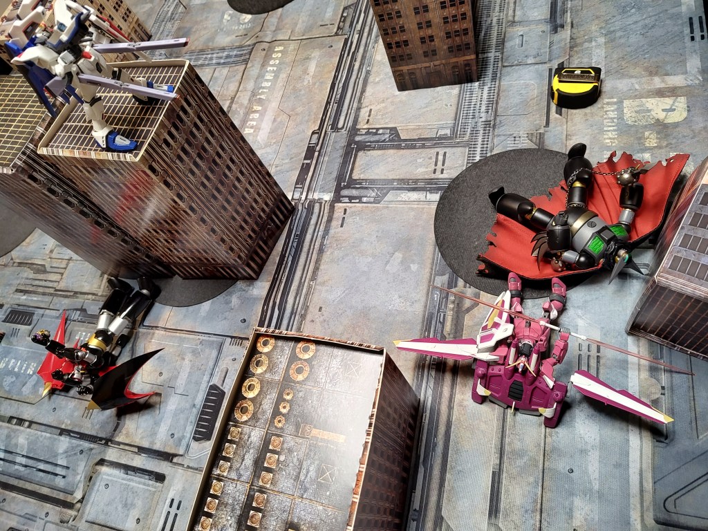 Although we underestimated the weight of CHOGOKIN Z. The players apply the “wobbly model syndrome” rule and put Mazinger on the ground level but remember that he’s actually on top the building.