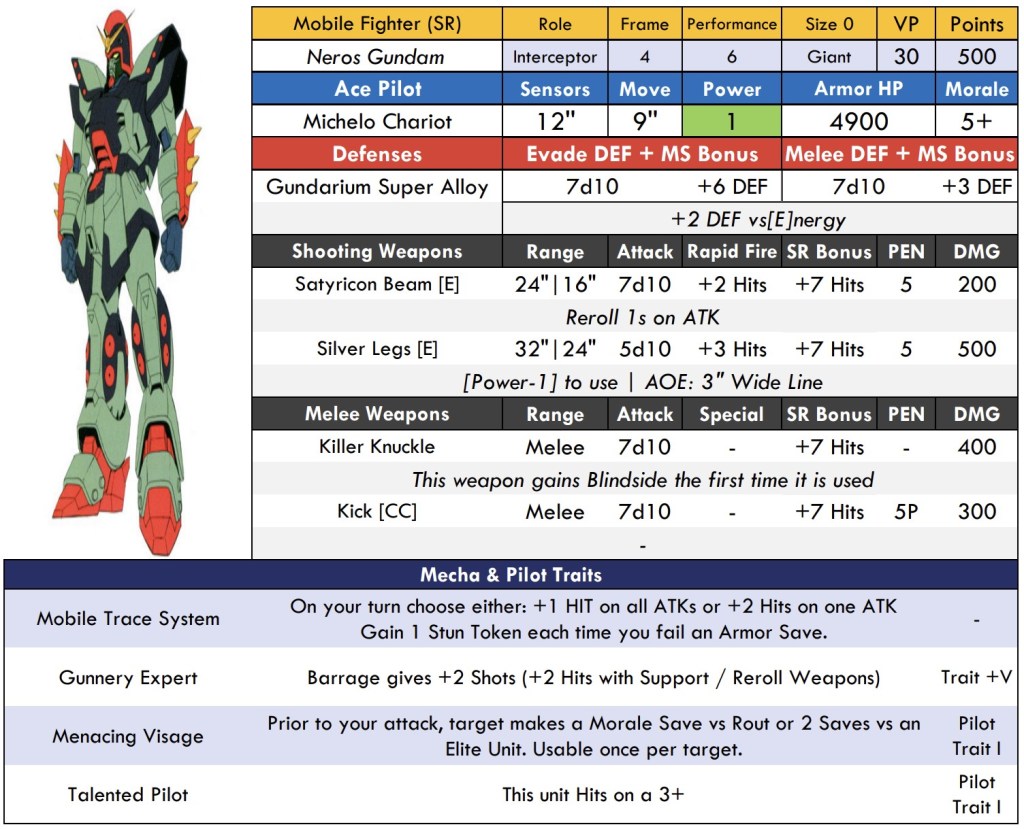 We’ve been working on updating some G Gundam profiles for this month. First up is Neros Gundam from Neo Italy.