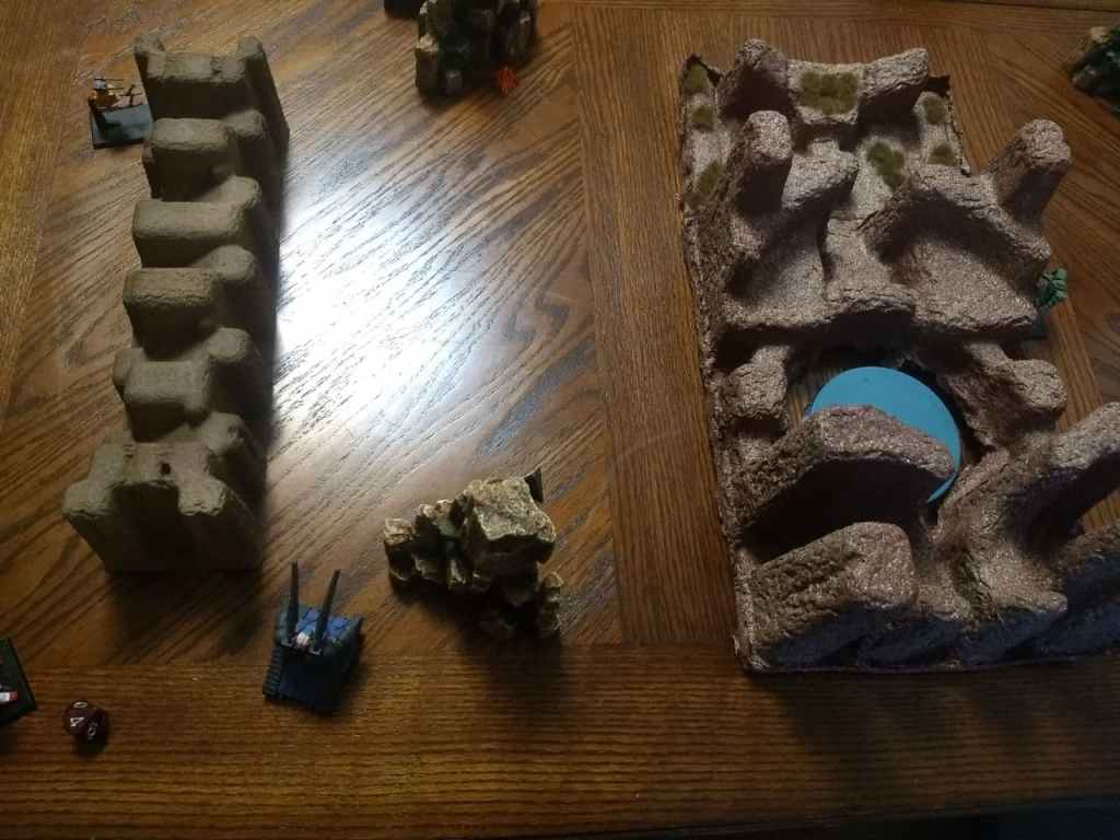 You can also use junk around the house as terrain. Plastic, cardboard and styrofoam can make for useful large terrain. Here’s a few examples.